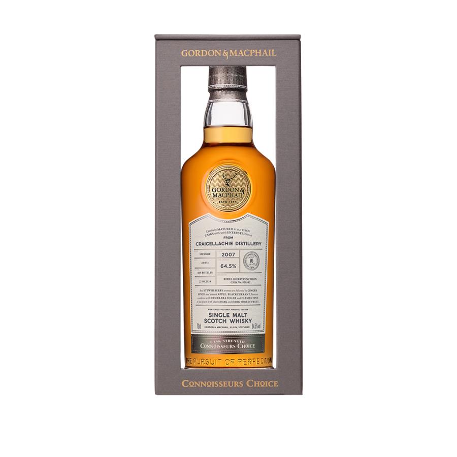 ZONA PRODUTTIVASpeyside COLOREDorato PROFUMOI profumi conducono a note di bacche rosse cotte e note speziate di zenzero e mela pressata. Più avanti, note di toffee lasciano spazio a composta di lampone e caco in polvere. SAPOREAl palato la ricchezza del ribes nero si combina con zucchero Demerara e clementina. Note di prugna scura e fichi sono bilanciati da rimandi al pepe nero. Il finale è pieno e persistente, con note di rovere bruciato e frutti di bosco scuri. NOTECraigellachie è un piccolo villaggio nel cuore dello Speyside, un centro nevralgico per il commercio del Whisky: proprio qui, nel 1891, Peter Mackey e Alexander Edward, fondano l’omonima distilleria, che da sempre ha prodotto i suoi distillati per la creazione di vari Blended Whisky. La gamma di Single Malt di Craigellachie si distingue per uno stile unico e personale, diverso dagli altri Whisky dello Speyside: il carattere dei distillati infatti è robusto e muscoloso. INVECCHIAMENTO16YO in Refill Sherry Purcheon