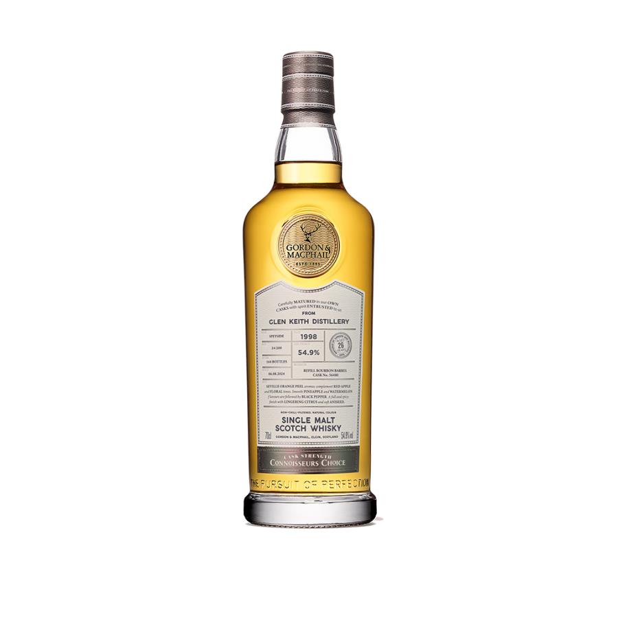 ZONA PRODUTTIVASpeyside COLOREDorato PROFUMOI profumi di scorza d’arancia di Siviglia si accompagnano a mela rossa matura e note floreali. Continua con il fudge alla vaniglia lascia spazio a frutto della passione e a un cenno di erba appena tagliata. SAPOREAl palato, ananas e anguria in apertura si combinano con note pepate. Successivamente emergono noce di cocco essiccata e sottili note di pompelmo e rovere maturo. Il finale è ampio e speziato, con note persistenti di agrumi e sfumature di anice. NOTEGlen Keith, fondata da Chivas Brothers nel 1957 sulle rive del fiume Isla, nel cuore dello Speyside, nasce come distilleria sperimentale dedicata all’innovazione nel mondo del Whisky. Nel corso degli anni ha saputo unire tradizione e modernità, rispondendo alla forte domanda di Whisky per i Blended. INVECCHIAMENTO26YO in Refill American Hogshead